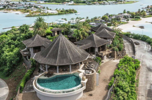 This breathtaking Bali-style villa doesn’t just offer impressive sunset scenes but sensational 360-degree views of the radiant Caribbean Sea. From its hilltop setting at exclusive Reeds Point, within the gated community of Jolly Harbour, Sunset Vista is quite simply the epitome of luxury and elegance. Designed to emulate the tranquillity of its environment, the villa fuses organic accents of wood and stone with glass walls and open sides to bring the outdoors in.