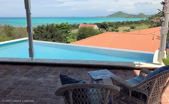 The villa is fully air conditioned, has a spacious open plan living and dining area and a fully equipped stylish kitchen. Floor to ceiling glass doors lead out from this area onto a large covered verandah and decking surrounding an infinty pool. A small tropical garden with BBQ adds to the Caribbean feeling of calm and tranquility.